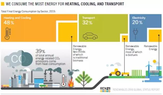 2017年可再生能源發電占到全球發電量凈增加值的70%。 這是現代歷史上可再生能源發電量增長最大的一年。然而占全球終端能源需求量80%的供熱、制冷和交通領域對于可再生能源的使用卻遠遠落后于電力行業。昨日(6月4日)發布的《全球可再生能源現狀報告2018》(GSR)是對全球可再生能源發展最全面的年度綜述。