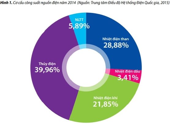 目前,三大電力來源是水電,天然氣和煤炭,占電力系統總發電量的94%以上??稍偕茉床⑽从糜诎l電,可再生能源發電量的88.6%以上來自小型水電站(Nguyen Ngoc Hoang,2015)。特別是,風力發電和太陽能發電只占該國電力生產的一小部分。根據國家電力系統現代化中心年度評估報告,2014年可再生能源裝機容量為2,009兆瓦。具體而言,小水電為1,938兆瓦,生物質能為24兆瓦,風力為46兆瓦,太陽能發電為1兆瓦(國家電力系統監管中心,2015)。