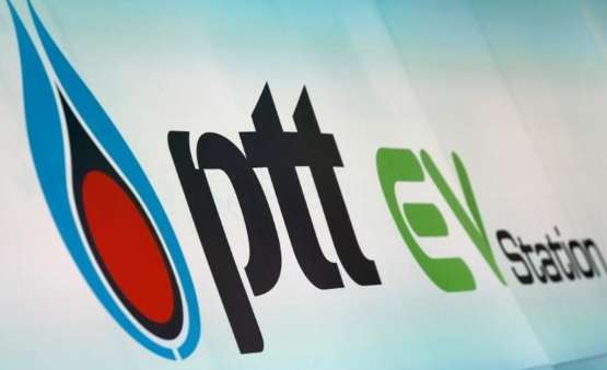 文件圖片:2016年8月15日,泰國曼谷的商用EV(電動汽車)充電站啟用期間,PTT Pcl能源公司的標志被看到。路透社/ Jorge Silva / File Photo