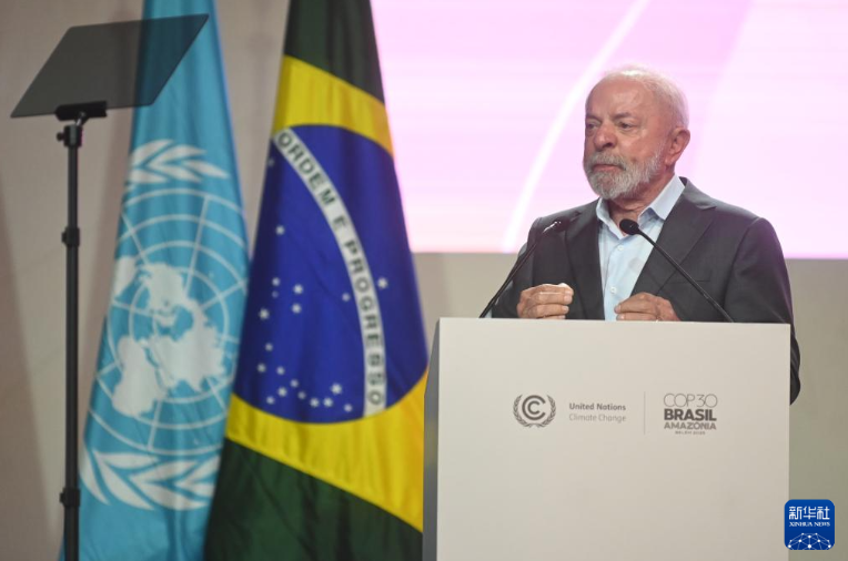 11月10日,巴西總統(tǒng)盧拉在巴西北部城市貝倫舉行的《聯(lián)合國氣候變化框架公約》第三十次締約方大會(COP30)開幕式上發(fā)表講話。新華社發(fā)(盧西奧·塔沃拉 攝)