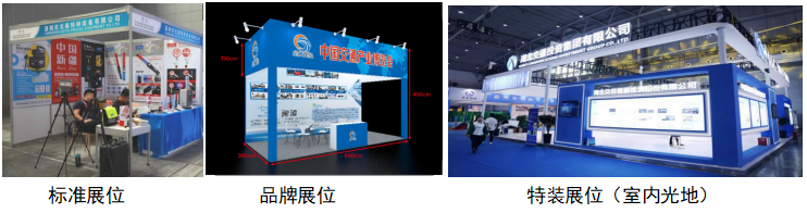 ●標準展位:國內企業:(長×寬×高:3m×3m×2.5m)¥12,800 / 個;國際企業:¥20,000/個(含搭建楣板、洽談桌椅及照明等)