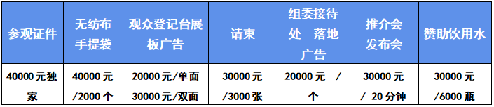 ●品牌展位:國內企業:(長×寬×高:6m×3m×4.5m)¥30,000 / 18㎡;國際企業:¥,40,000/18㎡(含鋼制桁架搭建、噴繪制作、地毯、洽談桌椅及照明等)