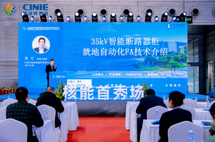 本屆核博會特設(shè)“核能首秀場”活動,為核能行業(yè)新成果、新技術(shù)提供展示平臺。長纜科技電氣子公司發(fā)表“35kV 智能斷路器柜就地自動化 FA 技術(shù)”的專題演講,圍繞技術(shù)原理、核心優(yōu)勢、應(yīng)用場景及實踐成效展開深入分享。該項技術(shù)能有效強化新能源電力系統(tǒng)及電力網(wǎng)絡(luò)的供電穩(wěn)定性,提升運維效率。