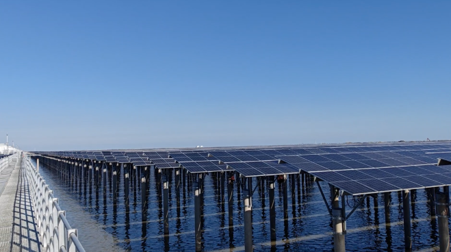 在呂四項(xiàng)目的安全日志里,記錄著大風(fēng)天氣、暴雨預(yù)警、潮汐延誤作業(yè)等不同的數(shù)據(jù),如何在惡劣環(huán)境下確保施工安全與效率,成為貫穿項(xiàng)目始終的必修課。項(xiàng)目團(tuán)隊(duì)建立預(yù)警響應(yīng)機(jī)制,以設(shè)計(jì)優(yōu)化、工序協(xié)同破解困局,呂四項(xiàng)目的順利并網(wǎng),展現(xiàn)出了他們向海要地、與浪共舞的智慧。通過(guò)團(tuán)隊(duì)協(xié)作與科學(xué)調(diào)度,不僅成功克服了雨季施工難、大風(fēng)頻發(fā)、潮汐作業(yè)窗口短等多重挑戰(zhàn),更以安全優(yōu)先為前提,實(shí)現(xiàn)了工期與質(zhì)量雙達(dá)標(biāo),最終項(xiàng)目以光伏發(fā)電和漁業(yè)養(yǎng)殖相結(jié)合,形成“水上發(fā)電、水下養(yǎng)殖”的復(fù)合產(chǎn)業(yè)模式,在5800畝海域上實(shí)現(xiàn)灘涂資源的高效利用和生態(tài)開(kāi)發(fā)。