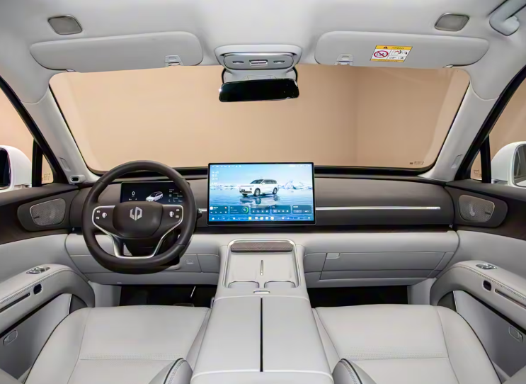 動力方面,零跑D19增程版車型配備了80.3kWh的電池組,CLTC純電續航可達500公里,并且該車型首創增程CTC電池技術,配備創新的門檻排氣集成系統,盡可能的讓底盤空間為電池所用。增程版車型采用的是800V平臺,30%-80%充電時間僅需15分鐘。同時,增程版還配備了40L的油箱以及雙能電機四驅增程系統,采用了驅動發電一體機,整體動力系統相較傳統增程系統減重60公斤以上,綜合續航提升5%,增程車型的最大功率為400千瓦。純電車型則采用1000V電壓平臺技術,并搭載三電機技術,綜合功率540千瓦,0-100km/h加速時間為3秒級。電池使用的是寧德時代最新的混合電芯,容量為115kWh,純電續航為720公里。依托千伏平臺,純電版車型的15分鐘可補能350公里以上的續航里程。