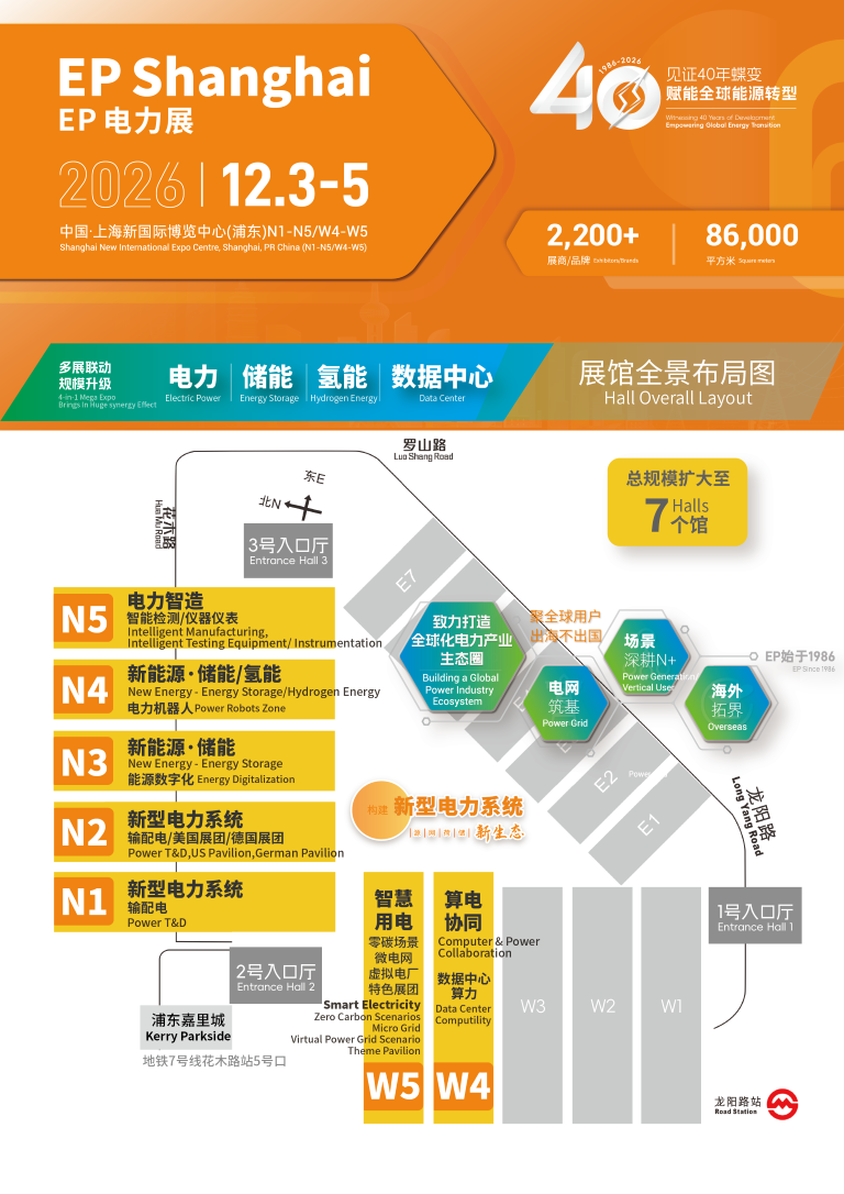 2026年是EP電力展繼往開(kāi)來(lái)的一年。本屆展會(huì)首次啟用N1至N5館、W4館及W5館,共計(jì)七大展館,展覽總面積預(yù)計(jì)突破86,000平方米,這不僅標(biāo)志著展會(huì)規(guī)模的再一次飛躍,更彰顯了電力行業(yè)蓬勃的發(fā)展活力與市場(chǎng)信心。