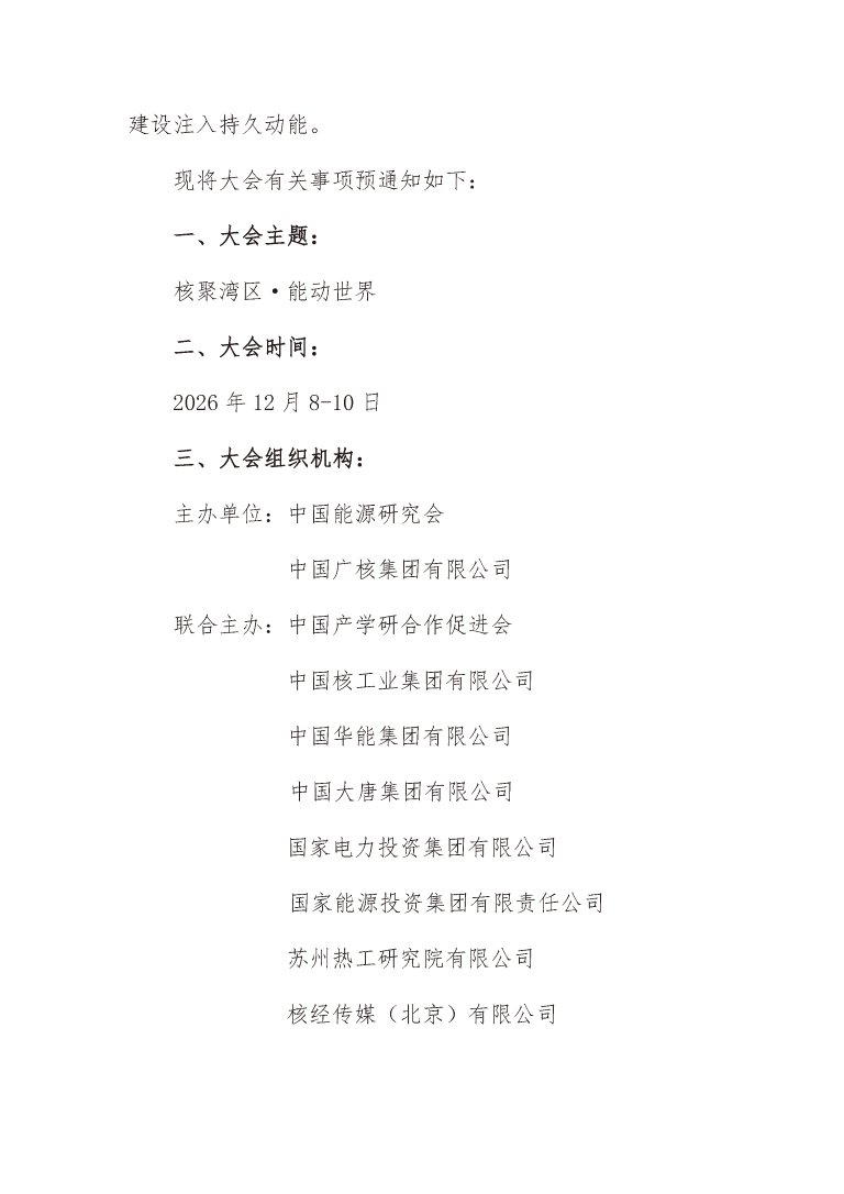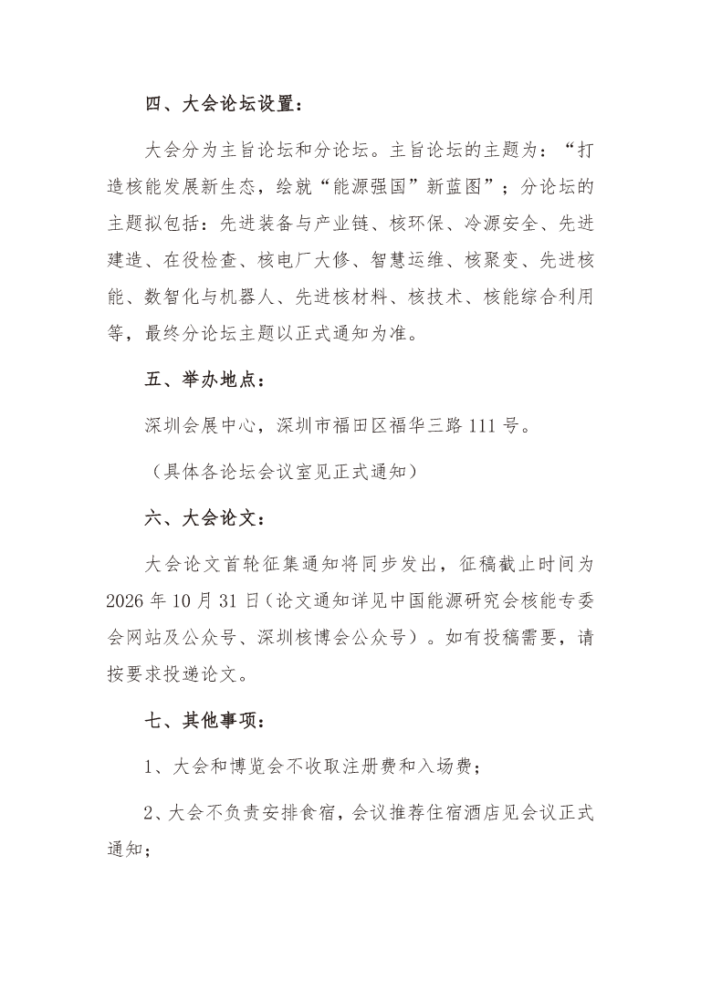 關(guān)于召開(kāi)2026第五屆中國(guó)核能高質(zhì)量發(fā)展大會(huì)暨深圳國(guó)際核能產(chǎn)業(yè)創(chuàng)新博覽會(huì)的預(yù)通知