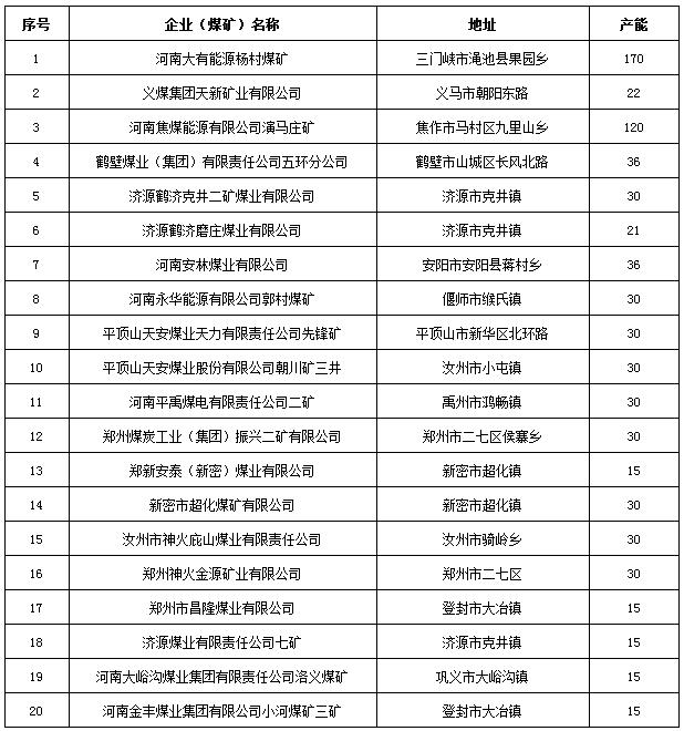 河南省2018年化解煤炭過剩產能關閉退出煤礦名單公示