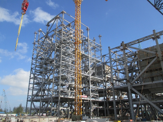 #1鍋爐共有8根大板梁, 總重41.6噸,此次吊裝的J3-4板梁長8776mm、寬400mm、高1500mm,重約5.4t,安裝位置頂部標高53700mm。