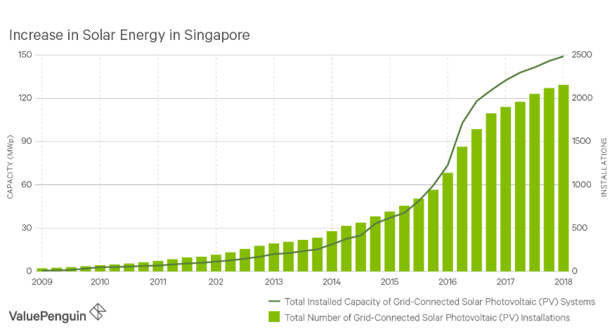 Solar是一種非常令人興奮的可再生能源。它是一種清潔的能源,可以越來越多地用于生產(chǎn)廉價的電力。例如,新加坡光伏(PV)系統(tǒng)的價格在2007年至2015年間下降了約80%。當然,隨著成本的下降,太陽能的采用迅速增長。自2016年初以來,連接到電網(wǎng)的太陽能光伏(PV)系統(tǒng)的總裝機容量從2018年初的73.6 MWp增加到149.1 MWp,增加了一倍多。在本文中,我們將研究消費者如何從中獲益新加坡太陽能的擴散。