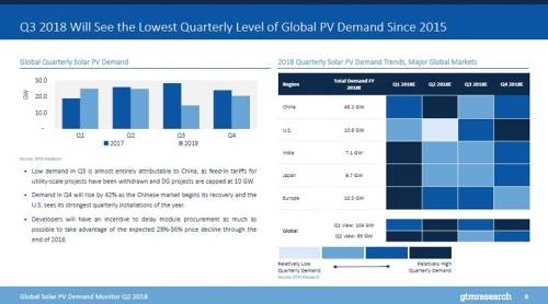 根據修訂后的預測,GTM Research已將中國列為2018年全球太陽能部署放緩背后的關鍵指標。