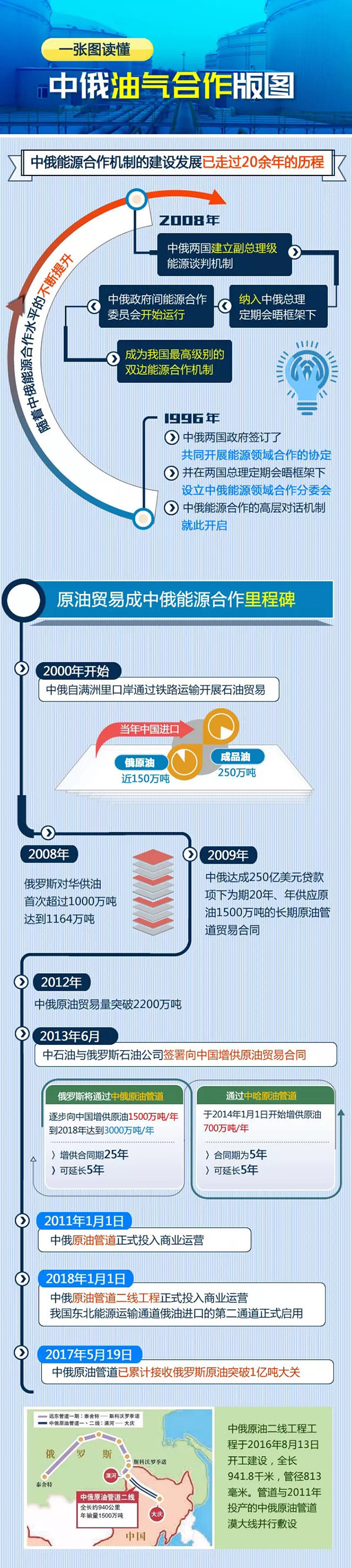 合作基礎堅實,未來空間廣闊。中俄油氣能源合作經過20余年的發展,已步入快車道,從油氣貿易到工程建設、從上游油田開發到下游合資煉廠,中俄油氣合作版圖越來越大、合作形式越來越多、合作層次越來越高——