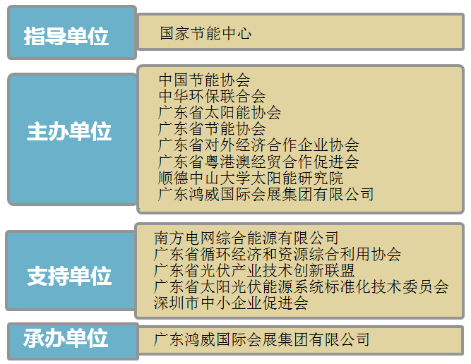 廣東省太陽能協會、順德中山大學太陽能研究院、鴻威國際會展集團/廣州國際光伏展組委會、中國科學院廣州能源所主辦,中國光伏行業協會、中國機電產品進出口商會、香港太陽能學會、山東省太陽能協會、浙江省太陽能光伏行業協會、江蘇省光伏產業協會、廣東省能源協會、廣東省扶貧開發協會、廣東省循環經濟和資源綜合利用協會、光伏們協辦的“廣東省太陽能光伏行業市場發展高峰論壇”與PV Guangzhou同期舉辦!