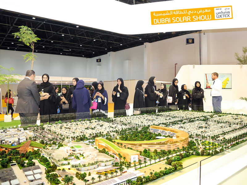 “已經啟動了一系列舉措,以實現可持續發展部門的全球領導地位。由Sheikh Mohammed bin Rashid Al Maktoum殿下發起的綠色可持續發展經濟倡議和2050年迪拜清潔能源戰略旨在將迪拜轉變為國際清潔能源中心。到2020年,希望迪拜25%的總發電量來自清潔資源,到2050年將達到75%。