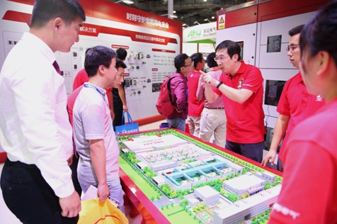 德力西電氣工作人員向觀眾用沙盤展示智能配電系統