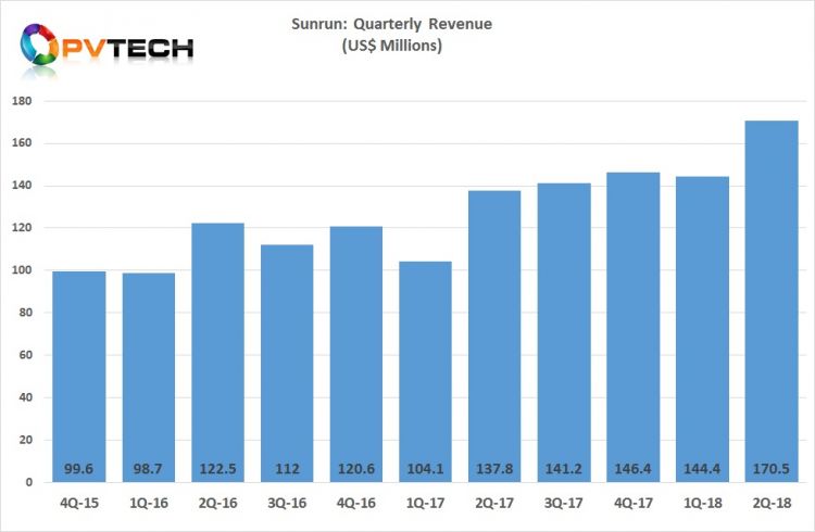 雖然季節性在部署和收入確認方面發揮了作用,但Sunrun的太陽能屋頂部署已從2016年第二季度的65MW增加到2018年第二季度的91MW。