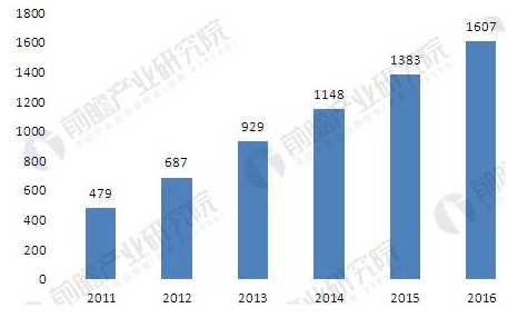 2011-2016年中國(guó)合同能源管理行業(yè)產(chǎn)值規(guī)模(單位:億元)