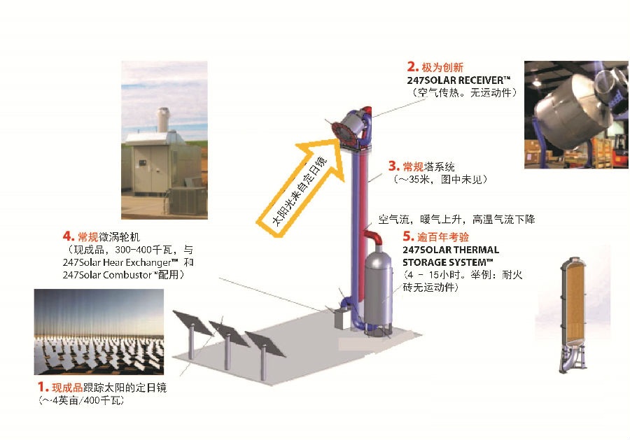 247Solar是一家美國(guó)公司,致力于開(kāi)發(fā)和推廣其開(kāi)發(fā)的新型光熱發(fā)電技術(shù)。該技術(shù)可以實(shí)現(xiàn)24/7全天候電力供應(yīng),其發(fā)電成本可以和其他任何發(fā)電形式相媲美,也避免了傳統(tǒng)電力、光伏、風(fēng)能和傳統(tǒng)光熱發(fā)電的一些不足。247太陽(yáng)能公司通過(guò)麻省理工大學(xué)附屬企業(yè)Wilson Solarpower Corp獲得美國(guó)能源部的基金支持,開(kāi)發(fā)出了247Solar Plant(注冊(cè)商標(biāo))。