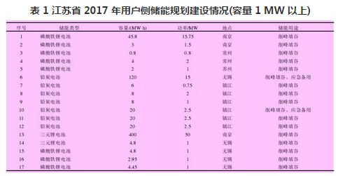 此外,在用戶側規劃儲能設備,不存在布點問題;并且因為我國目前實行分時電價和針對工商業用戶的兩部制電價政策,所以用戶側分布式儲能的引入多從經濟性角度出發,以減少電費或最大化收益為目標開展儲能配置研究。江蘇 2017年用戶側分布式儲能規劃建設情況如表 1 所示。從表 1可以看出,當前用戶儲能的建設目標還是以需求響應(價差套利)和提高供電可靠性為主,對電網的支撐作用主要是削峰填谷。