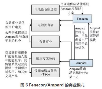 Fenecon/Ampard 開展的虛擬電廠模式,將Ampard 的能源管理模塊與 Pro Hybrid 儲能系統集成起來,使其可以在用戶側被用作虛擬電廠。用戶為了增加自發自用而購買儲能系統,Ampard 利用他們的能源管理系統(Ampard Energy Manager)將這些系統管理起來,為這些儲能系統增加虛擬電廠的功能提供一次調頻控制和備用等服務。Fenecon/Ampard 的商業模式見圖6。