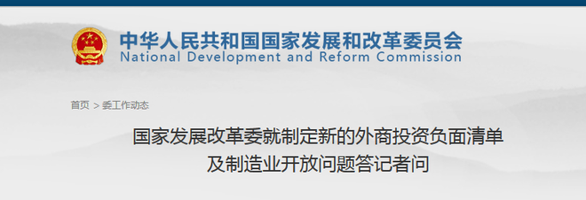 發(fā)改委:今年取消新能源汽車(chē)外資股比限制
