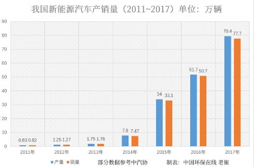 經過對比不難得出這樣一個結論:2017年相較于2011年,新能源汽車的產銷量已經增長將近100倍。可以說,無論是產銷量還是增速,中國新能源汽車行業都已經成為名副其實的世界第一。