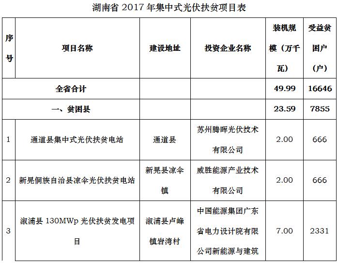 附件:湖南省2017年集中式光伏扶貧項(xiàng)目表