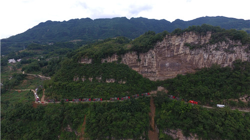 杰瑞壓裂車組行駛在四川頁巖氣地區(qū)蜿蜒的山路中