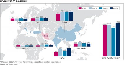 特點(diǎn)是,4月份對(duì)亞洲的出口從140萬(wàn)桶增加到181萬(wàn)桶,占伊朗原油出口總量的67%。另一方面,歐洲則從761降至7.16億桶。