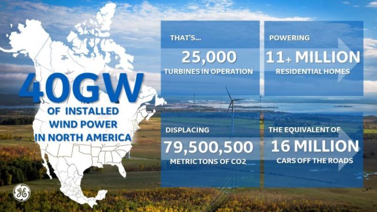 與此同時,GE可再生能源公司還宣布了該公司的一個重要里程碑,宣布該公司已成功在北美(加拿大和美國)安裝了40吉瓦風力發電量 - 足以為相當于1100萬戶美國家庭供電。更具體地說,15年內在美國安裝了38吉瓦的總量。