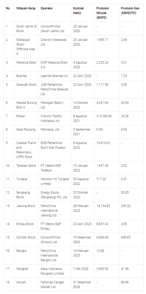 據(jù)佐科,除了在2020年六個塊跳出合同,在6月,政府將宣布其決定阻止合同到期2021年。同時,三擋是Rokan,奔突Segat和海峽班讓。但是,對于Bentu Segat而言,ESDM部門在2017年和未來20年擴大了合同范圍。